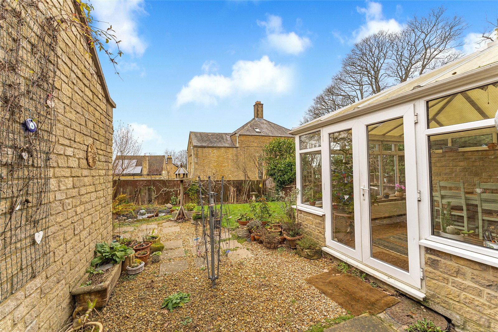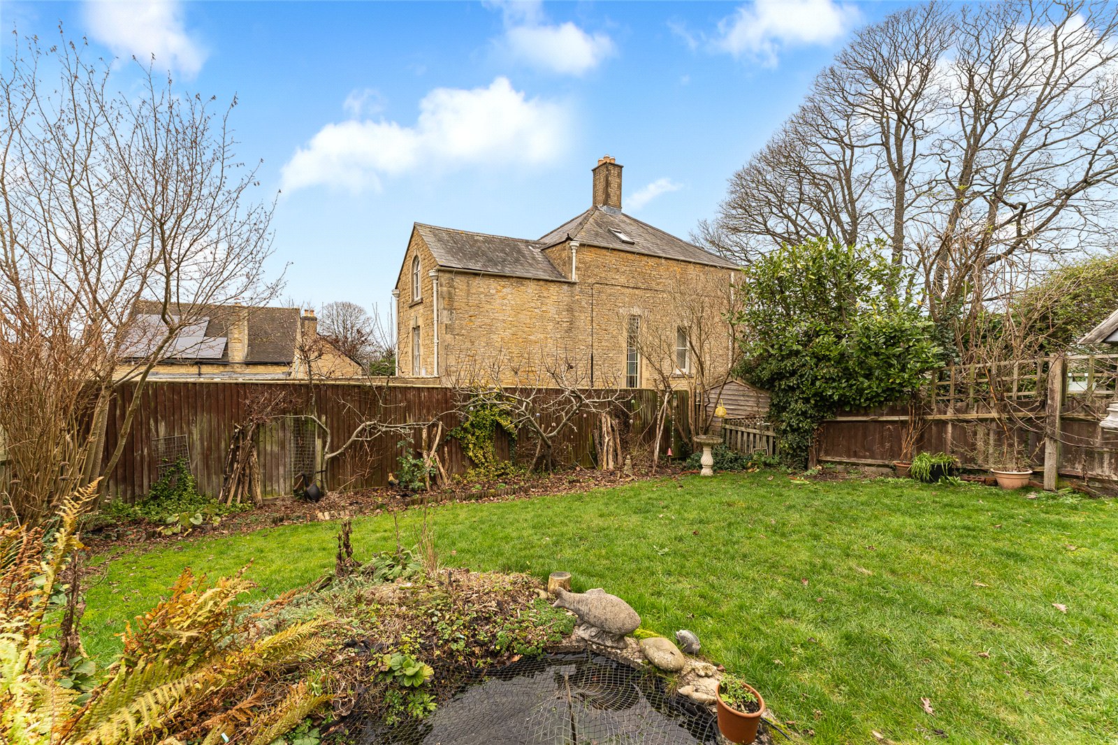 The fully enclosed rear garden is south/westerly facing and predominately laid to lawn with a seating area for alfresco dining.