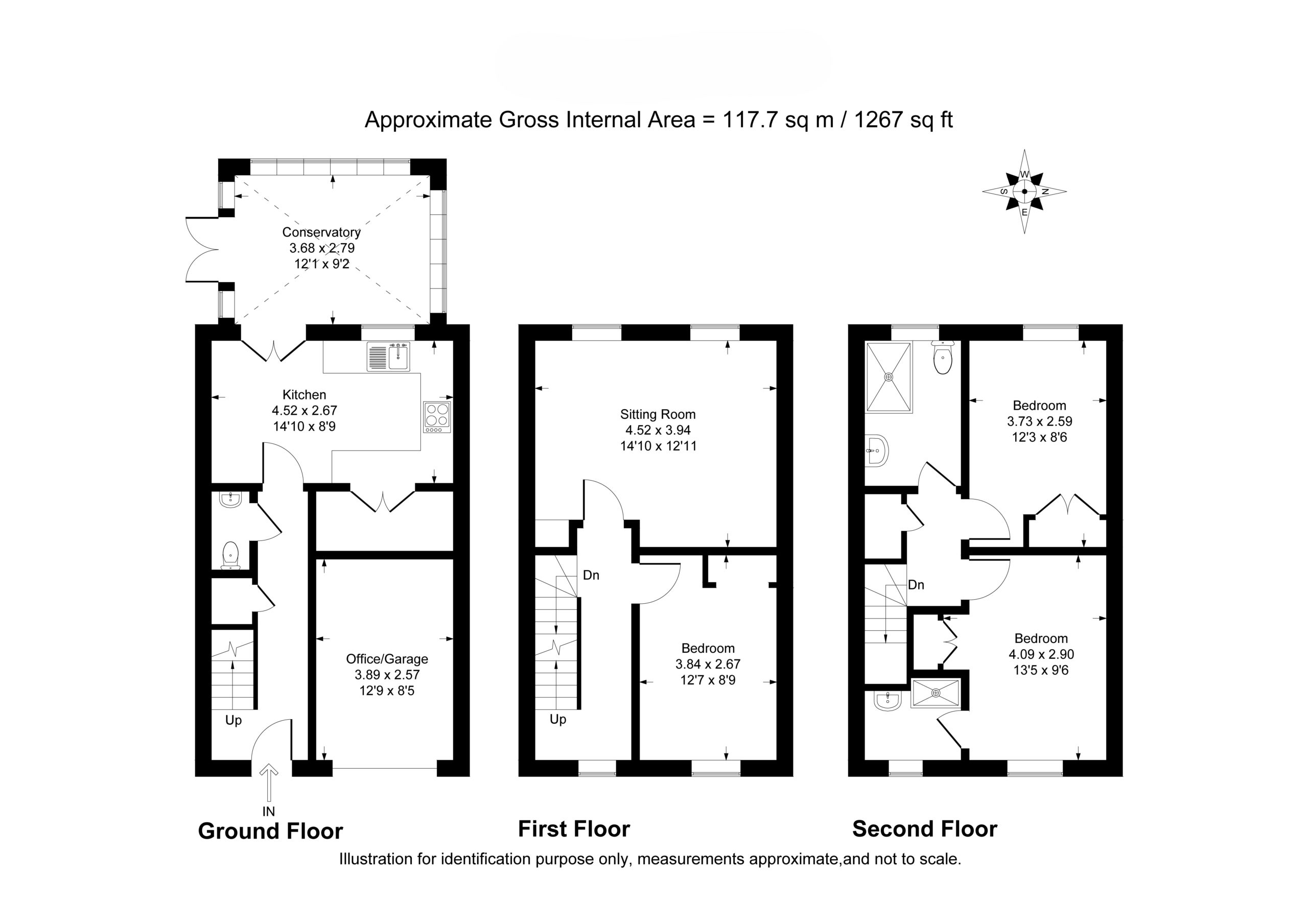 A three storey end of terrace town house, overlooking an attractive private lawned area, with a larger than average south/westerly facing rear garden.