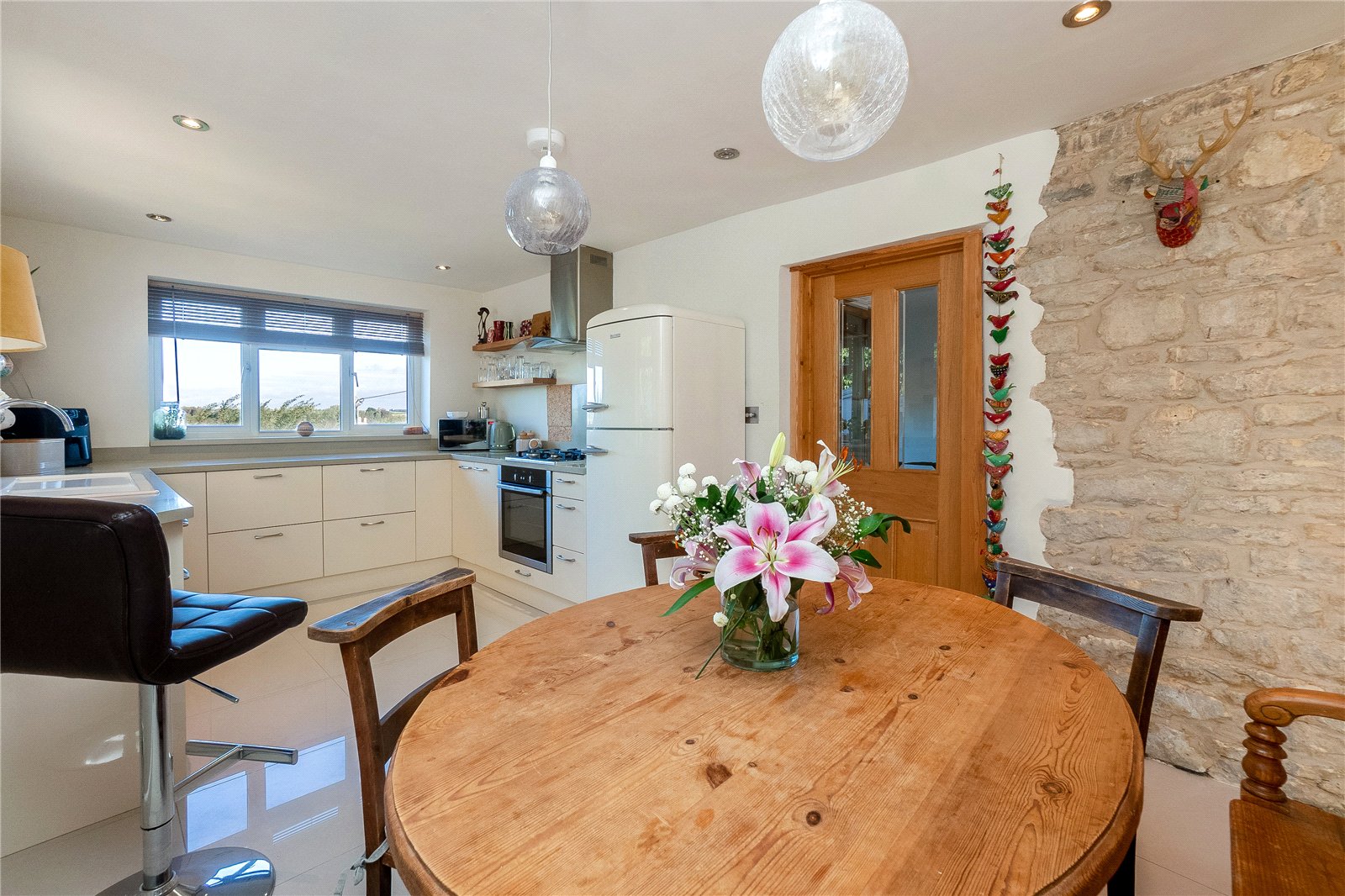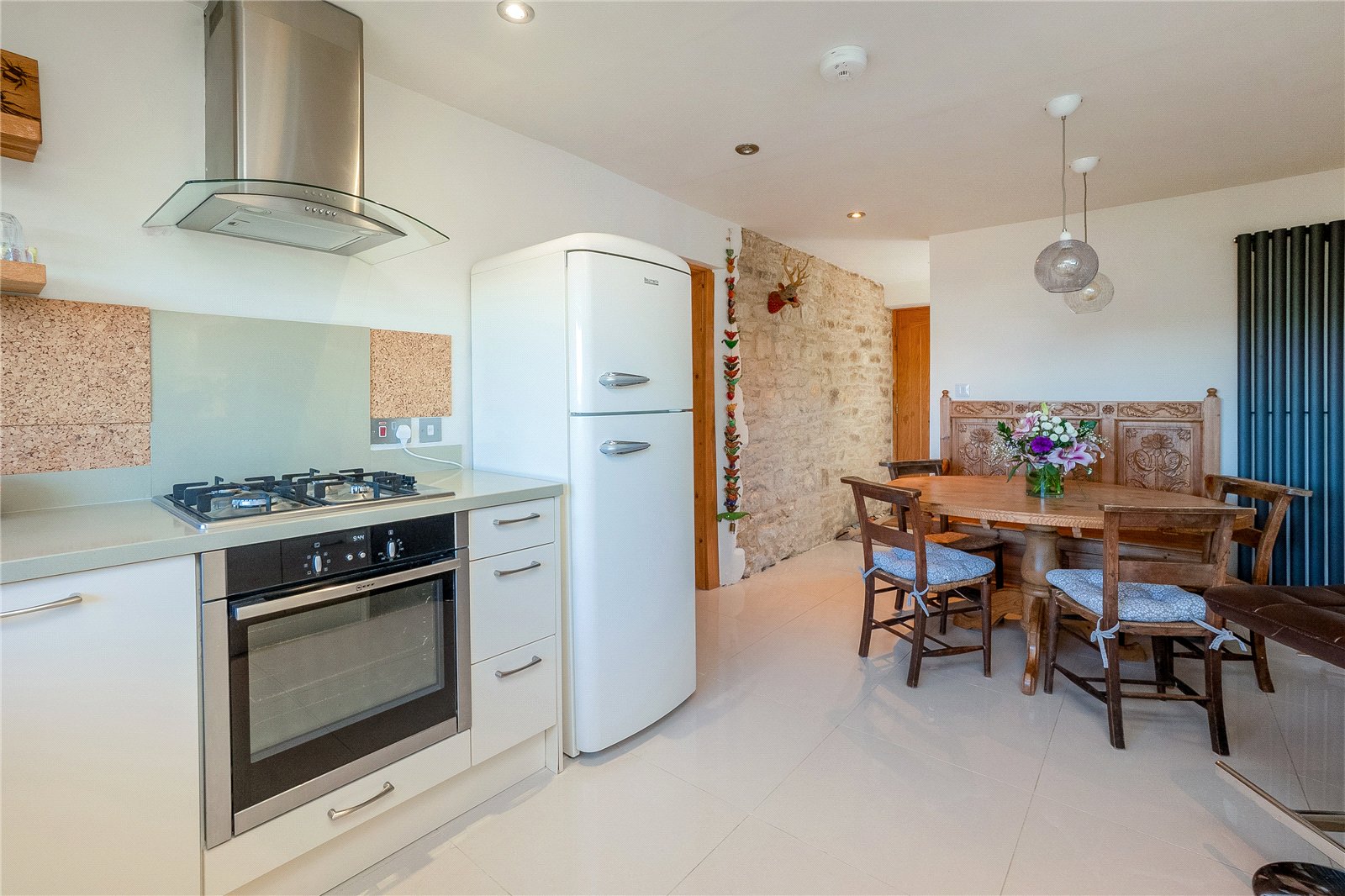 Kitchen/Dining Room - Fitted with a Range of Matching Base Units with Range of Integrated Appliances Including Gas Hob with Extractor Hood Above and Oven Below, Integrated Dishwasher, Tiled Floor, Double Glazed Windows to Side and Rear with Views Towards Open Countryside.