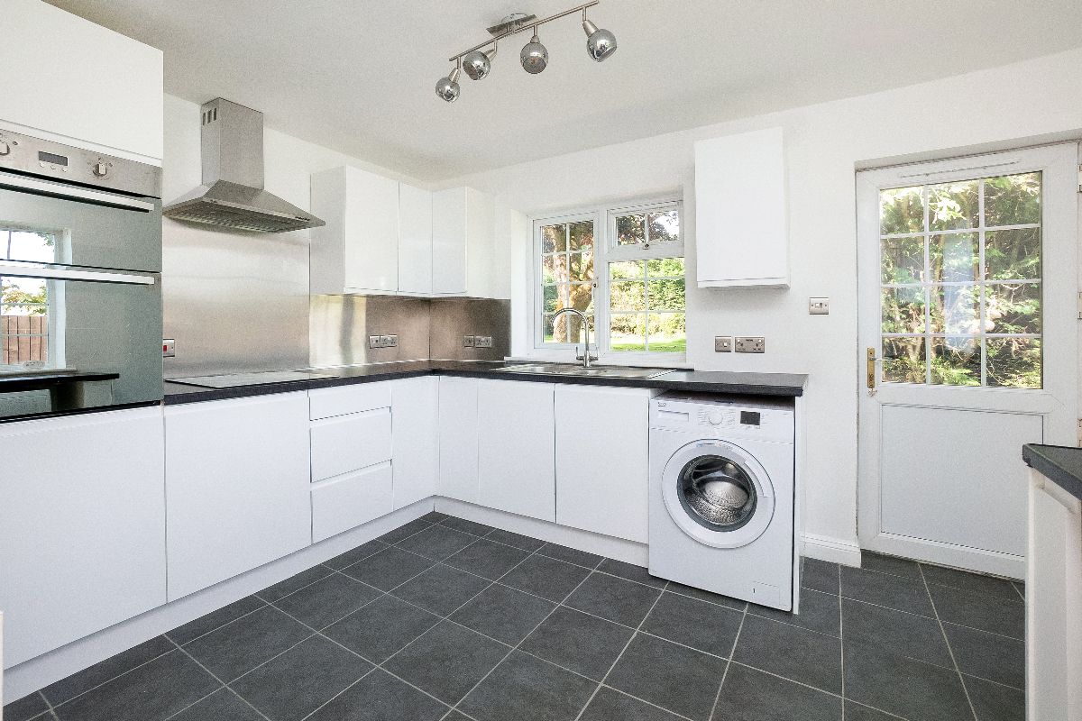 Kitchen - 1 ½ butler sink unit with cupboards under, range of matching wall and base units with worksurface, built in electric hob and double oven, plumbing for washing machine, tiled floor, freestanding central heating boiler, double glazed window to rear and side aspect, door to rear garden