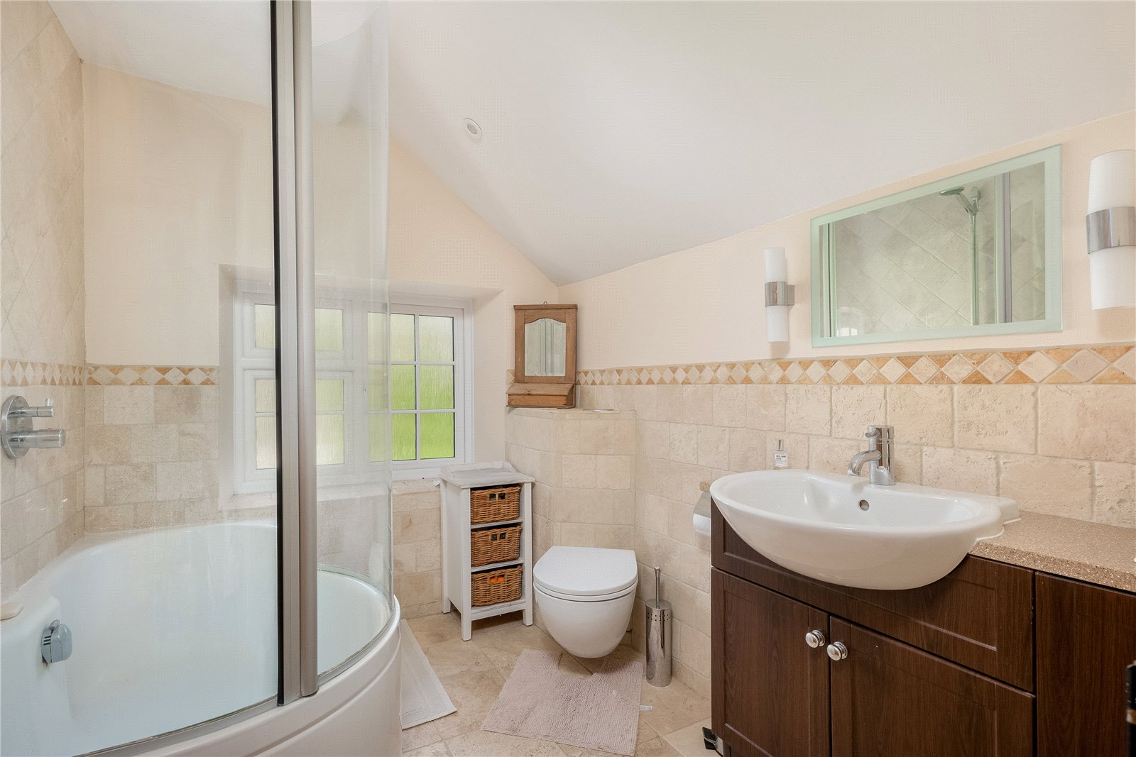 Bathroom: Comprising of white suite of, panelled bath with sperate shower over, hand wash basin with vanity unit below, low level WC, part tiled walls, tiled floor, double glazed window to side aspect.