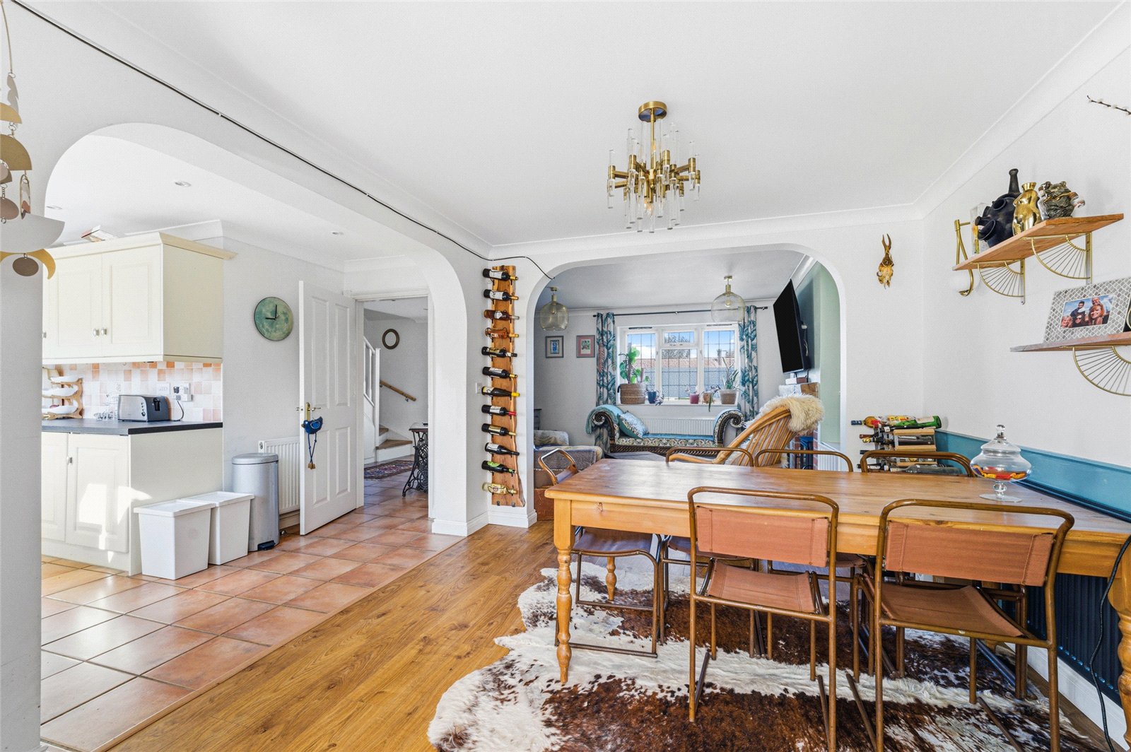 Upstairs, the first floor offers three well-proportioned bedrooms and a family bathroom, with the principal bedroom further benefiting from its own ensuite.
