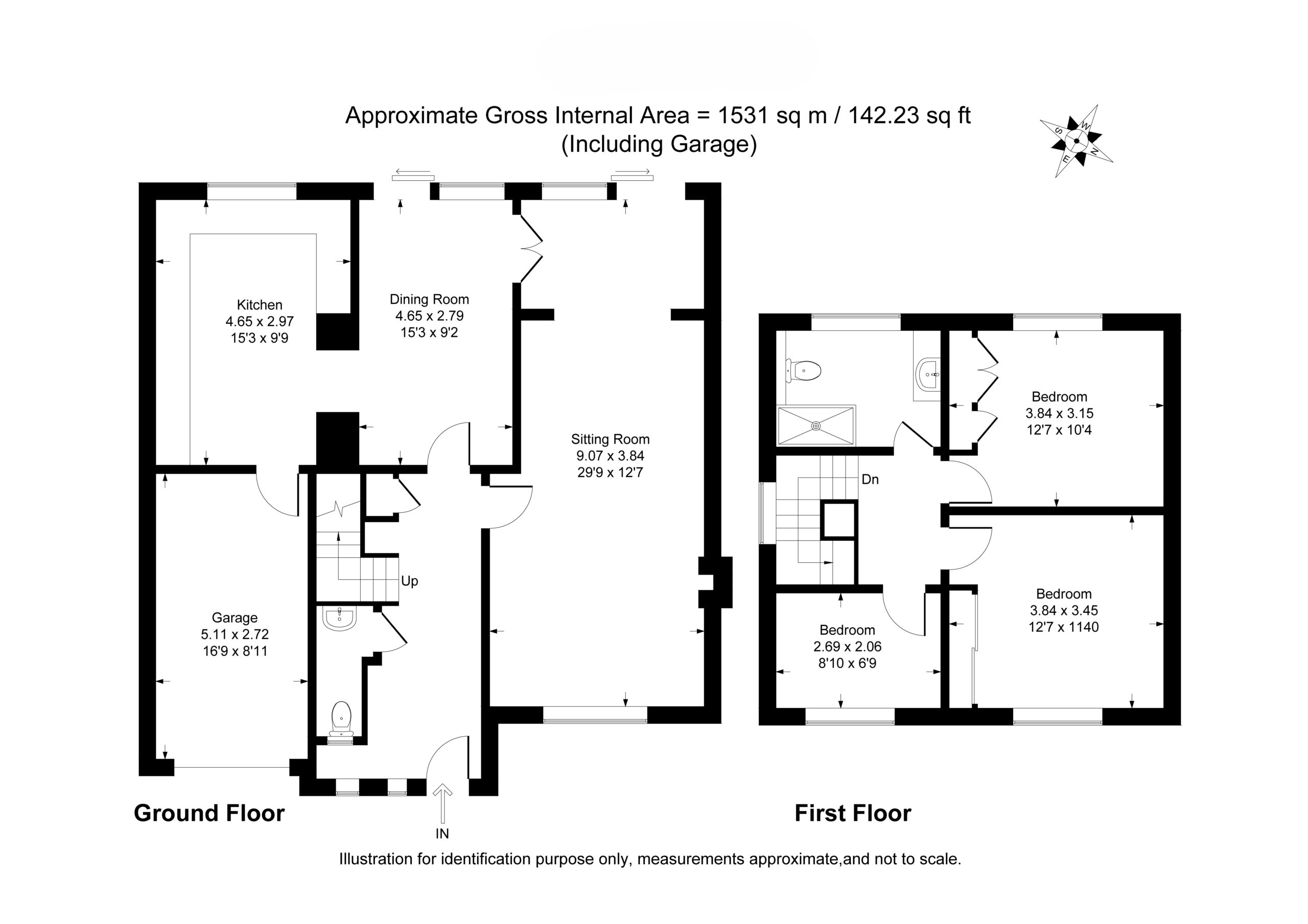 Rear Garden: Fully enclosed and laid with paved patio and artificial lawn. Enclosed by brick pier & close board fencing, outside light, and tap.