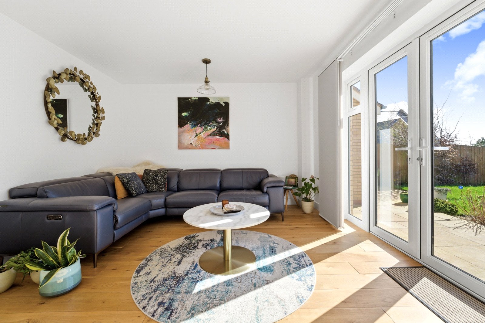 Sitting Room: Attractive engineered oak flooring, double-glazed French doors to the rear garden with windows either side.