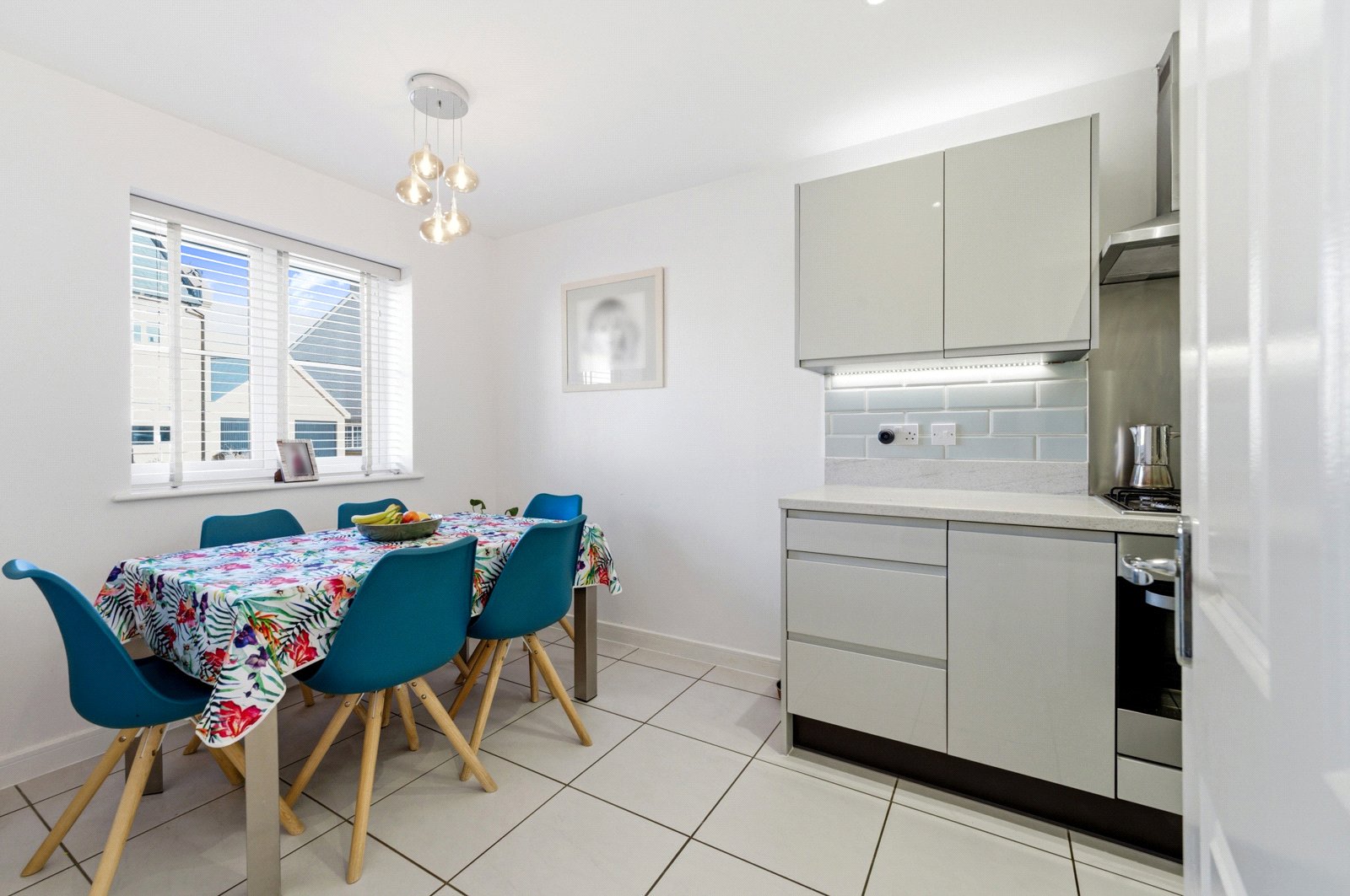 Kitchen/Dining Room: Fitted with a one-and-a-half bowl sink unit with cupboard below, a range of wall-mounted and base units with work surfaces, part-tiled walls and under-unit lighting. A range of integrated appliances including a gas hob with electric oven below and extractor hood above, dishwasher, washing machine and fridge/freezer. Tiled flooring and double-glazed window to the front aspect.