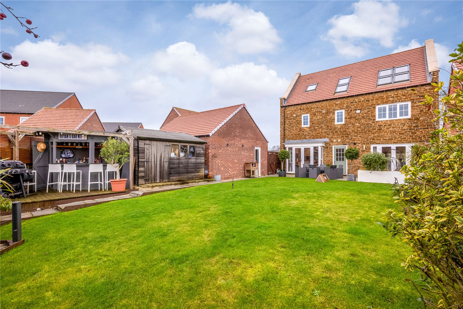 An impressive five-bedroom ironstone-built family home, arranged over three floors and positioned in an enviable edge-of-development location. The property enjoys attractive views over the country park to the front, enhanced by two Juliette balconies, and further benefits from two en-suite bedrooms, a detached double garage and ample off-road parking. The versatile layout makes this an ideal home for growing or multi-generational families.