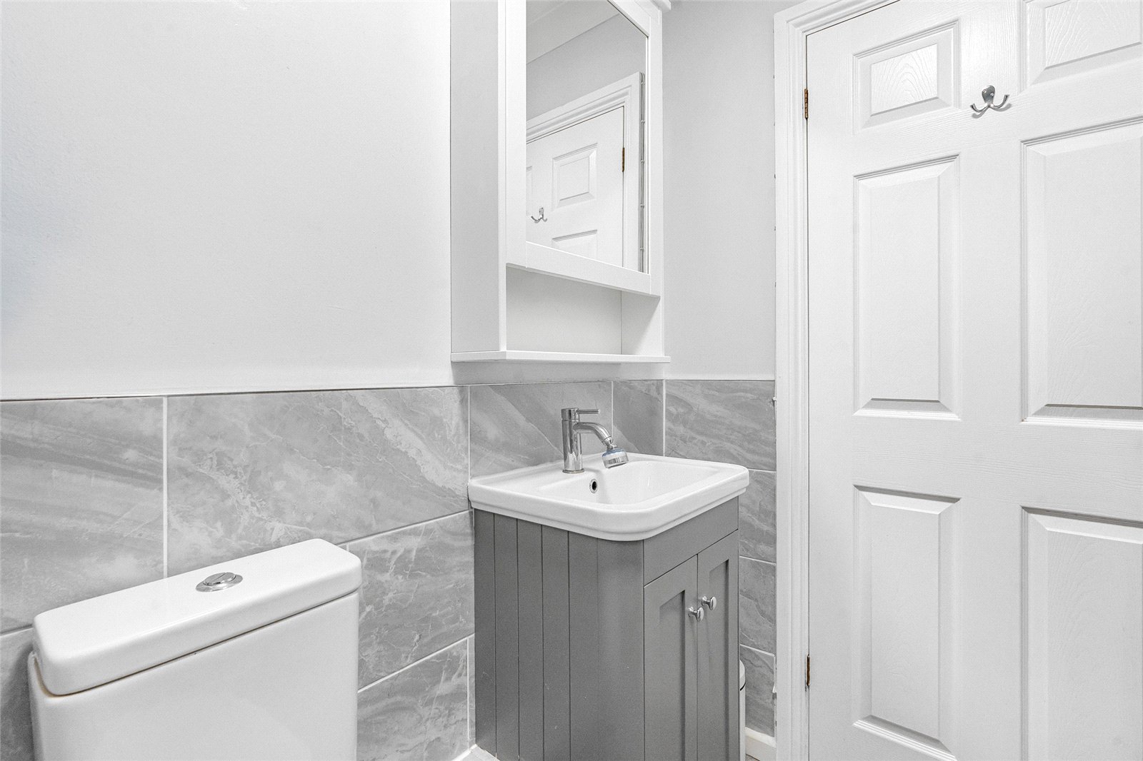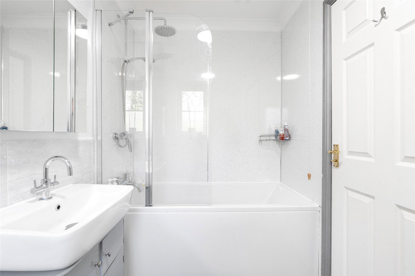 Bathroom: Panelled bath, low level WC, hand wash basin with cupboard underneath.