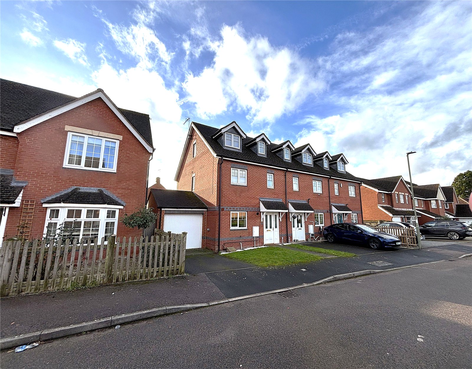 A versatile townhouse offering three double bedrooms, along with a study/nursery off the principal bedroom. The property also benefits from a kitchen/diner, an en suite, a garage, and parking, all situated in a quiet cul-de-sac location.