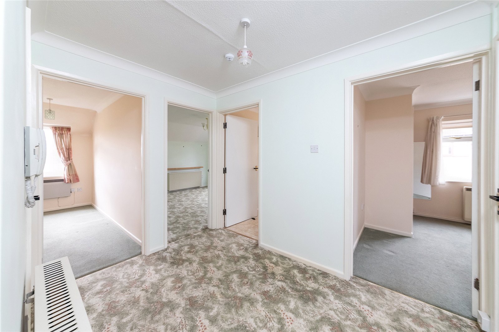 Entrance Hall: Built-in cupboard with shelving, walk-in cloaks cupboard, entry phone system, access to loft space.