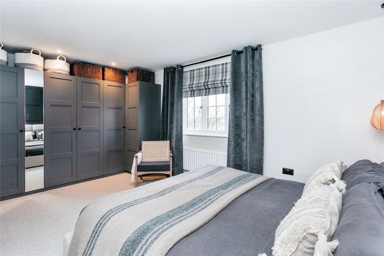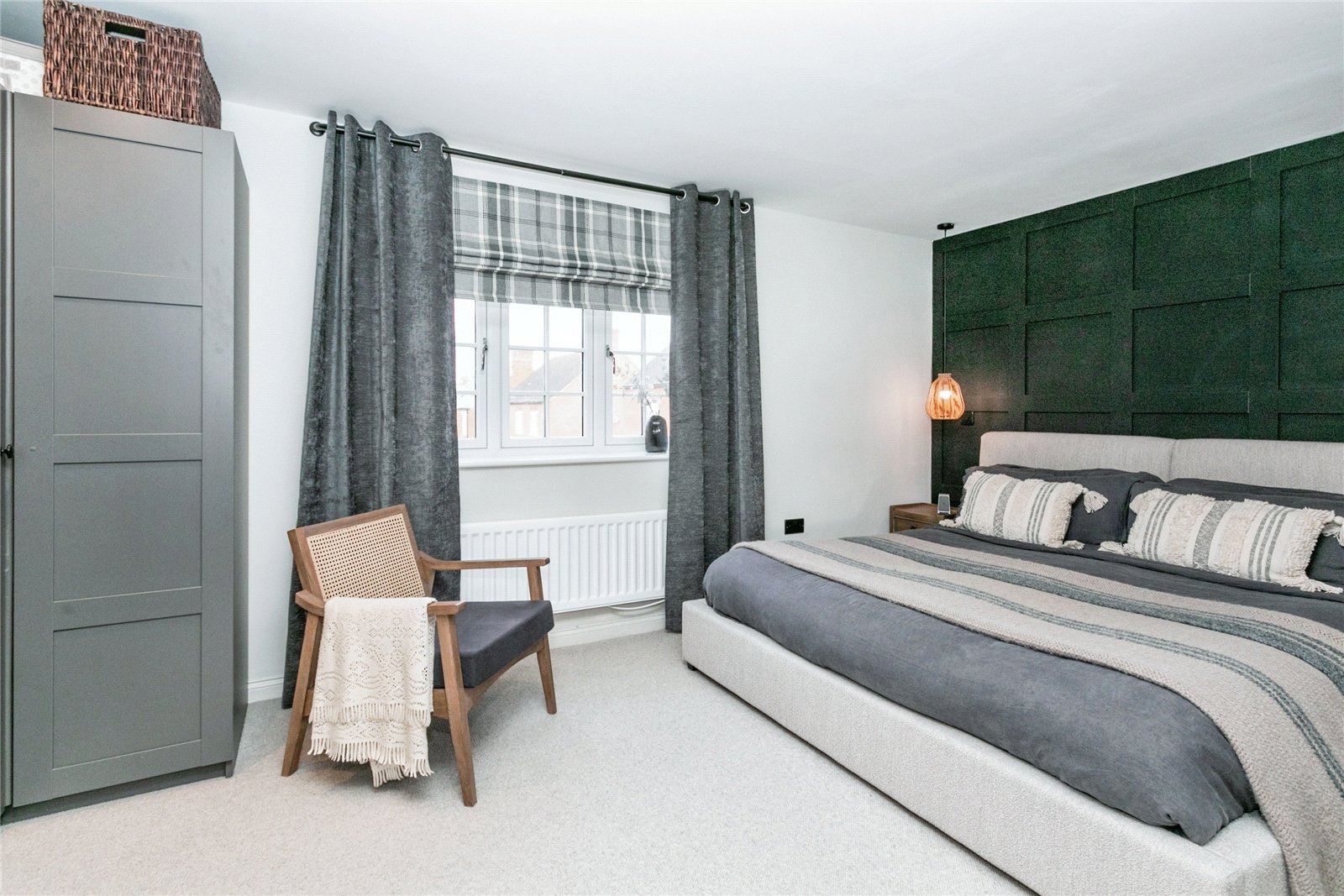 Master Bedroom – Double glazed window to rear aspect, range of, feature panelled wall.