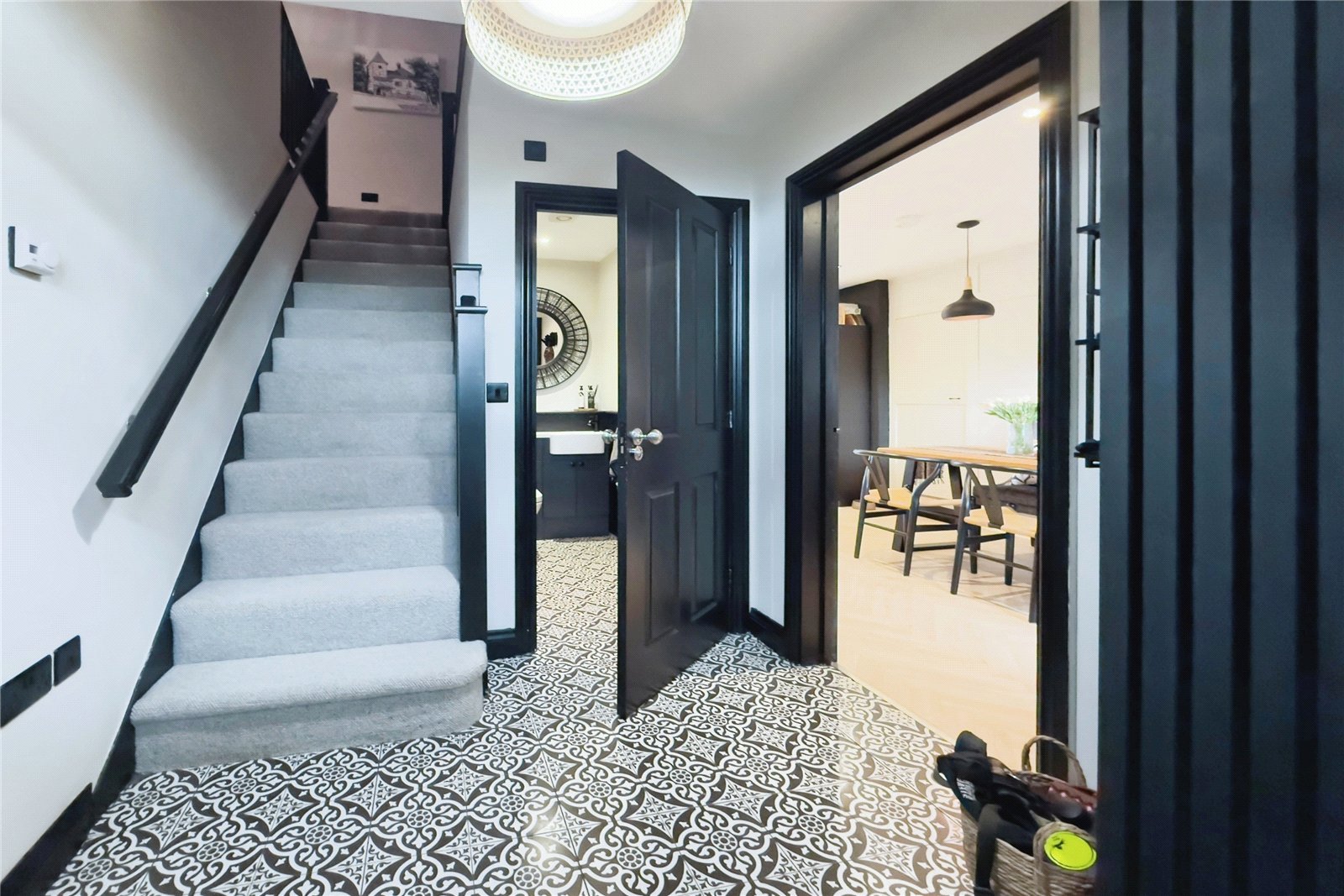 Entrance Hall – Mosaic tiled floor, stairs to first floor level, built-in cupboard.