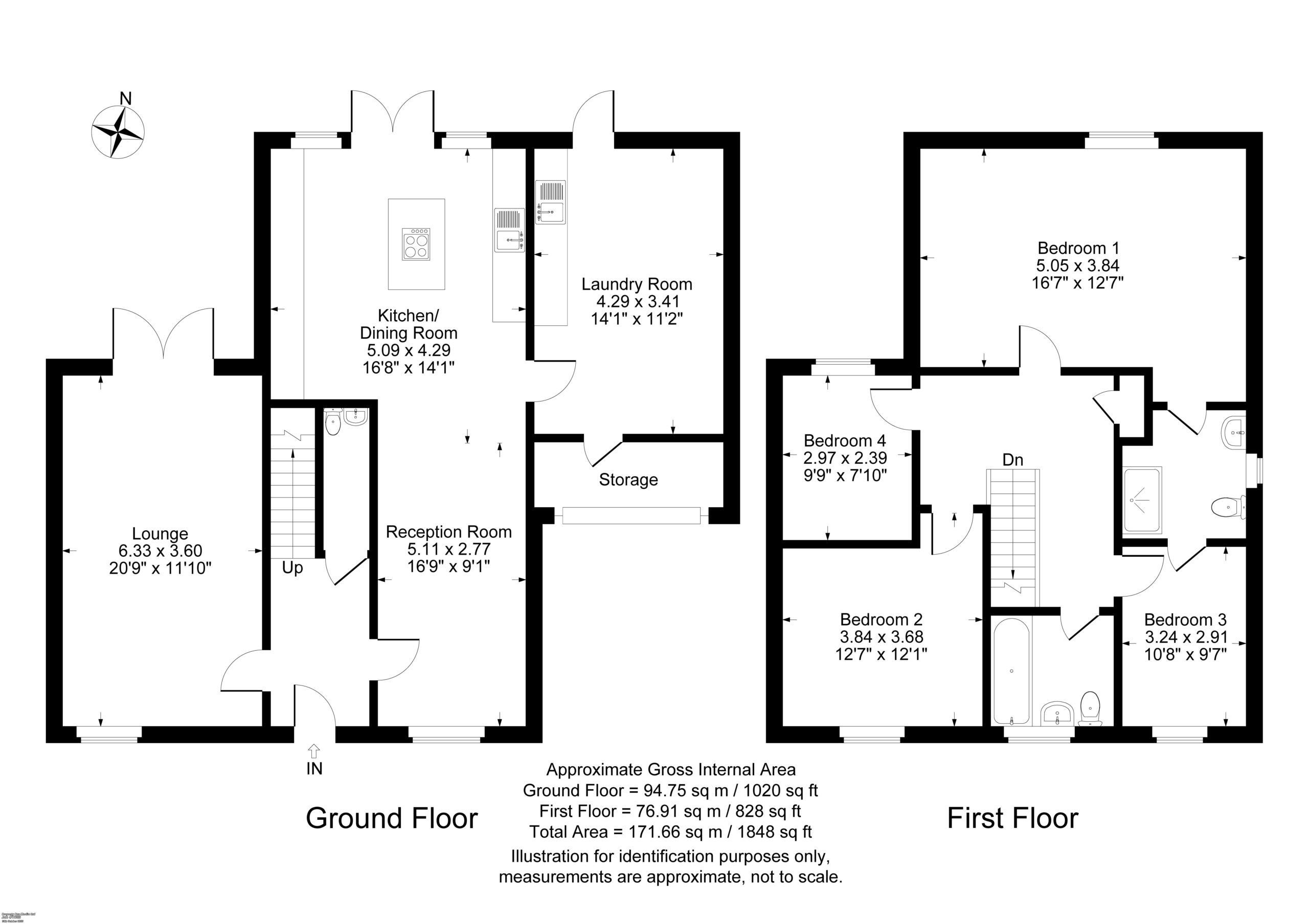 Rear garden – Fully enclosed and private with extended paved patio area, lawn, well-stocked flower and shrub borders, outside lighting and electricity, storage sheds, enclosed by panelled fencing.