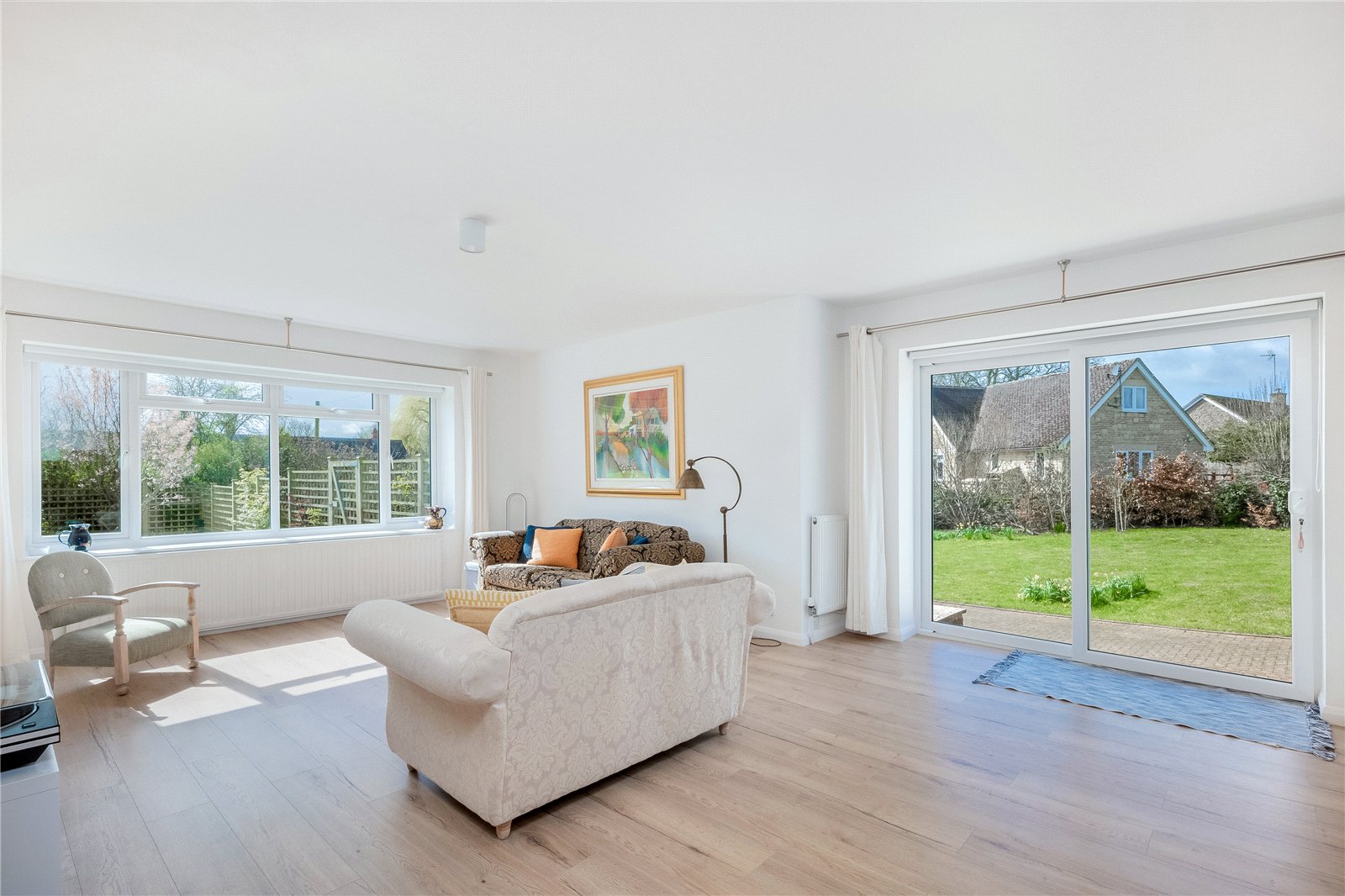 Sitting Room: Double- glazed window to front aspect, double glazed patio door to garden, laminate floor, arch through to