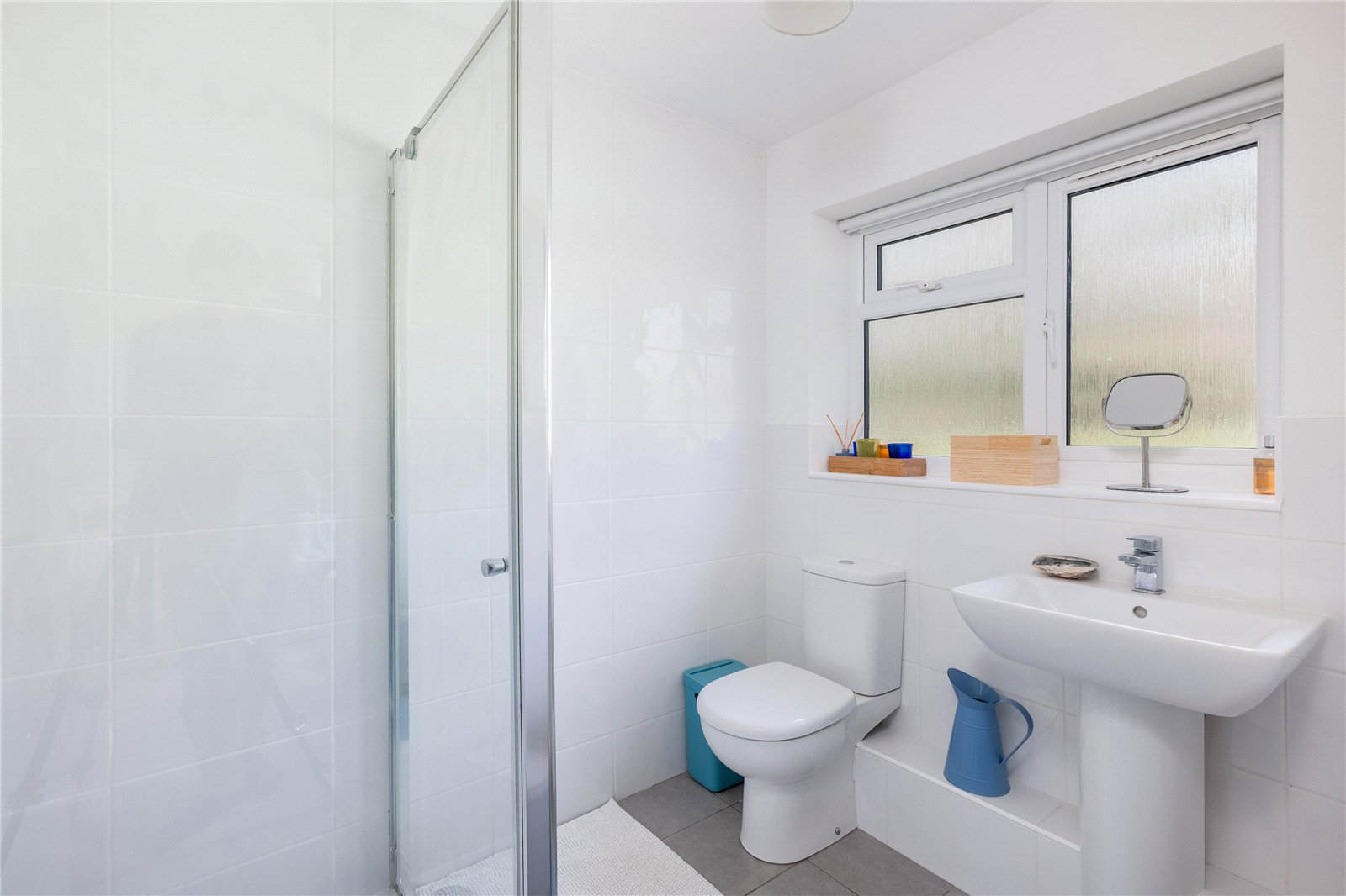 En-Suite Shower Room: Comprising a white suite, shower cubicle with rain shower over, pedestal hand wash basin, low level W.C, part tiled walls, tiled floor, double glazed window to rear aspect.