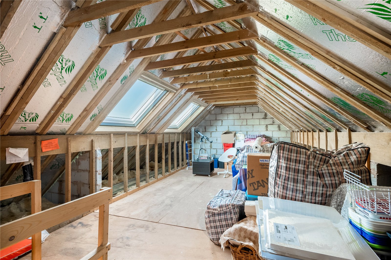 Attic Room: Fully boarded with four double glazed Velux windows, could easily be constructed to further bedrooms and bathroom. Mains power.