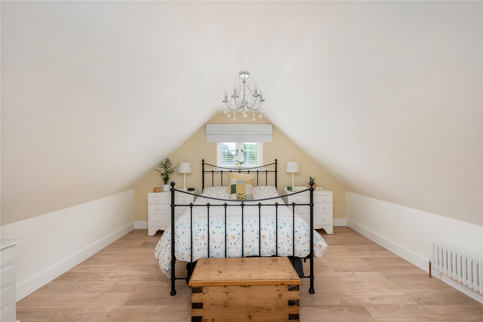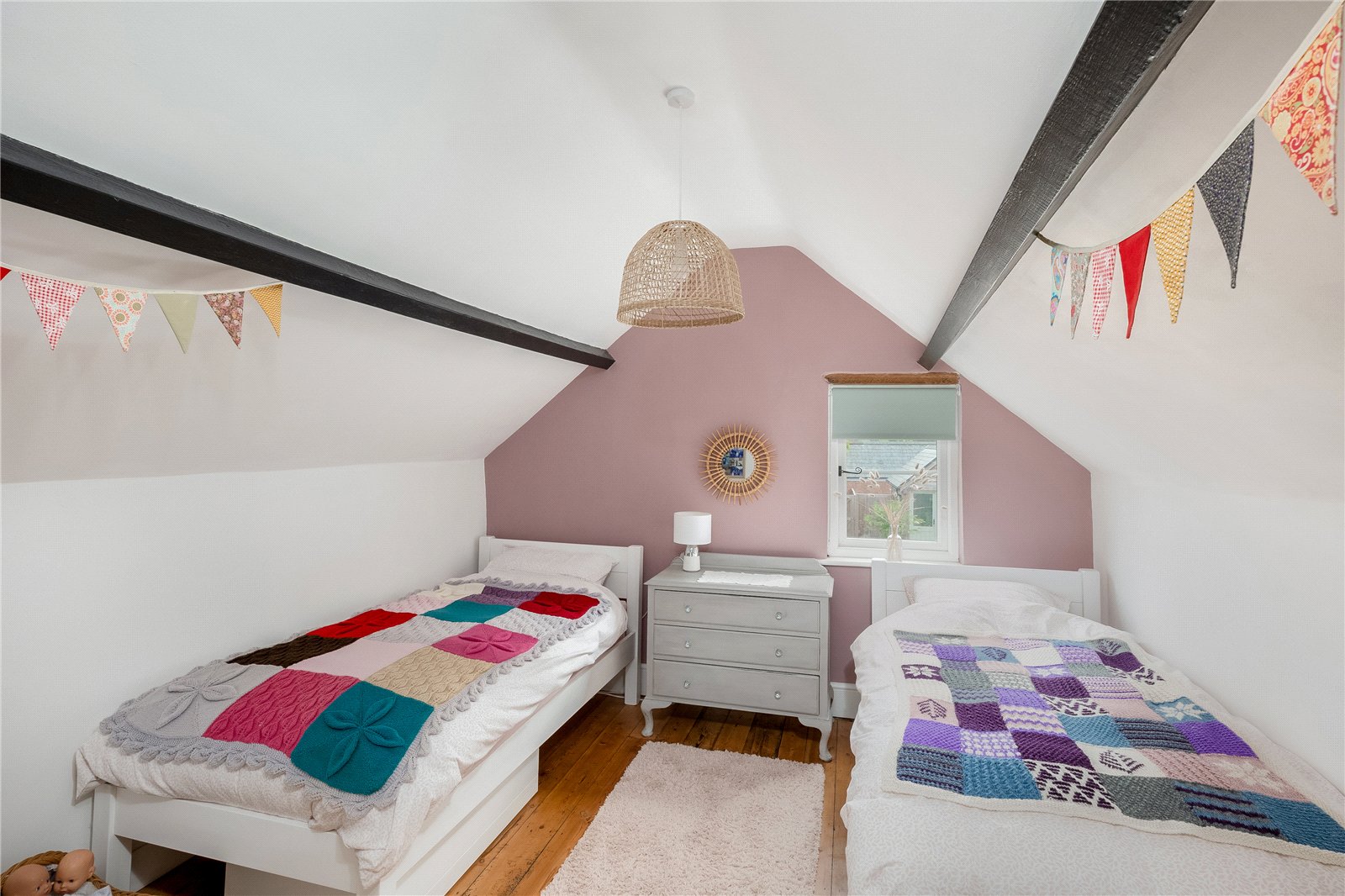 Bedroom Three: Double glazed window to rear aspect, vaulted ceiling with exposed beams, exposed original wooden floor.