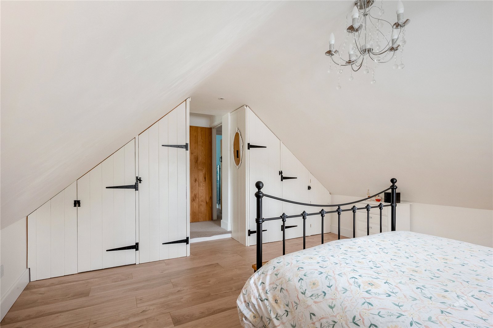 Master Bedroom: Wooden floor, vaulted ceiling, double glazed window to rear aspect, range of built-in wardrobes.