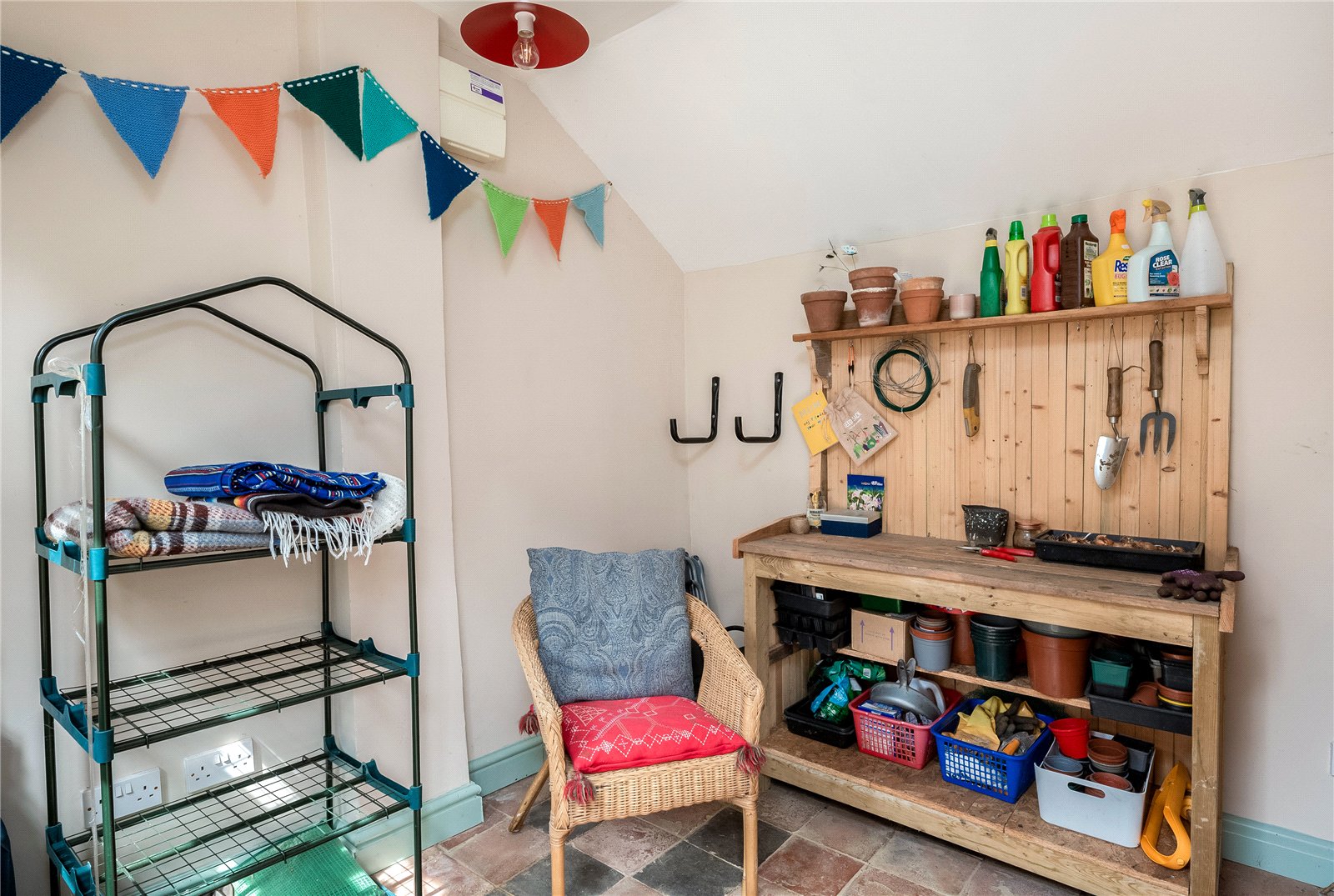 Rear Garden: Attractive paved patio area, detached brick-built home office which has been fully plastered, also has light and power, and quarry tiled floor. Fully enclosed by closed board fencing and laid to lawn with well stocked flower & shrub beds.