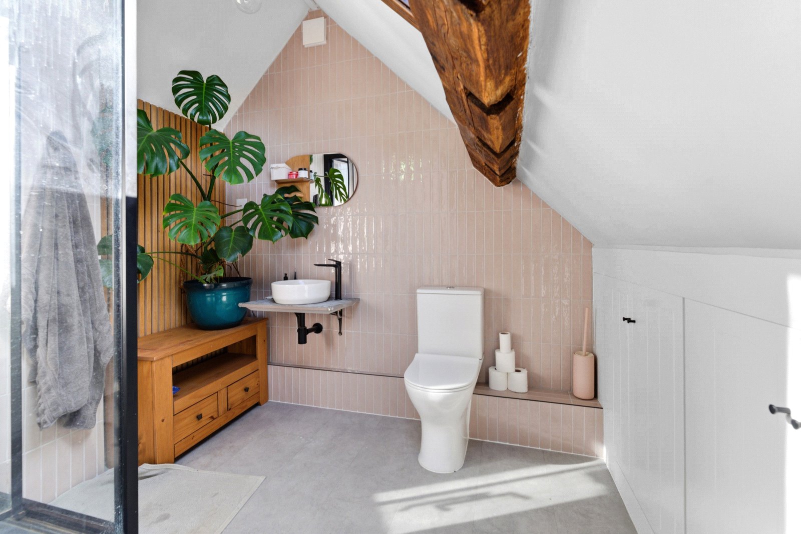 Also on the ground floor is a family bathroom fitted with a freestanding bath, contemporary fittings and attractive exposed brickwork. The first floor offers two well-proportioned bedrooms, both featuring character features. Stairs rise from the first floor to the second floor where the primary bedroom and en-suite shower room provides a charming and versatile space. Externally, the property benefits from a pleasant garden which offers a lovely area for outdoor seating and entertaining.