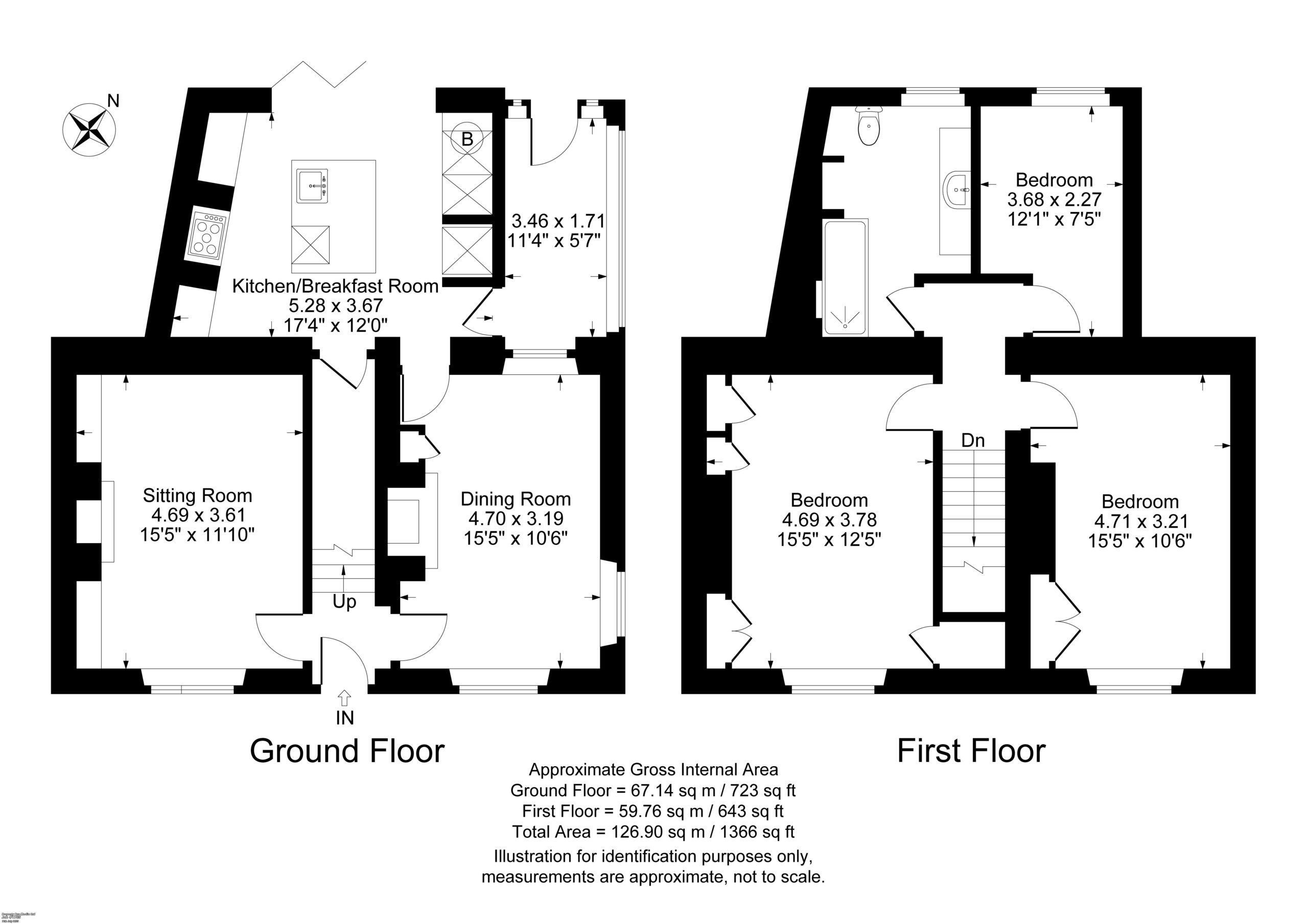 Bedroom Two: Double glazed window to front aspect, built-in double cupboard, access to insulated and boarded loft space.