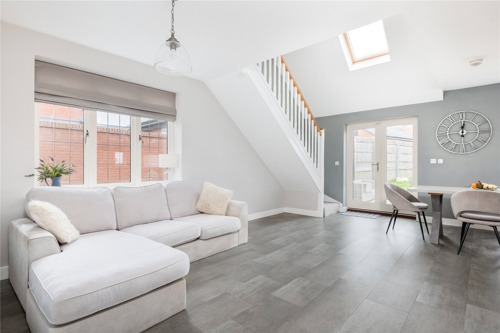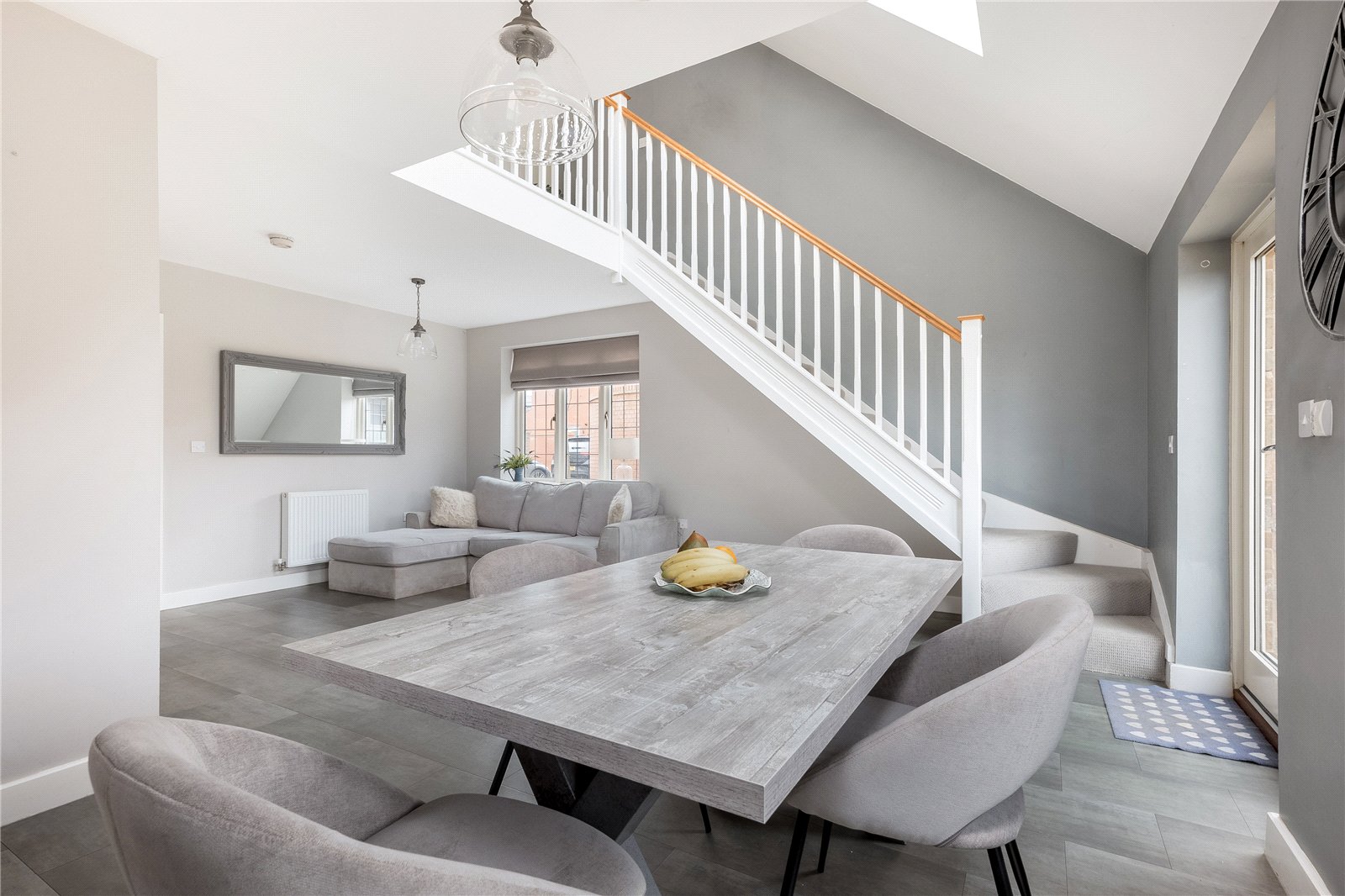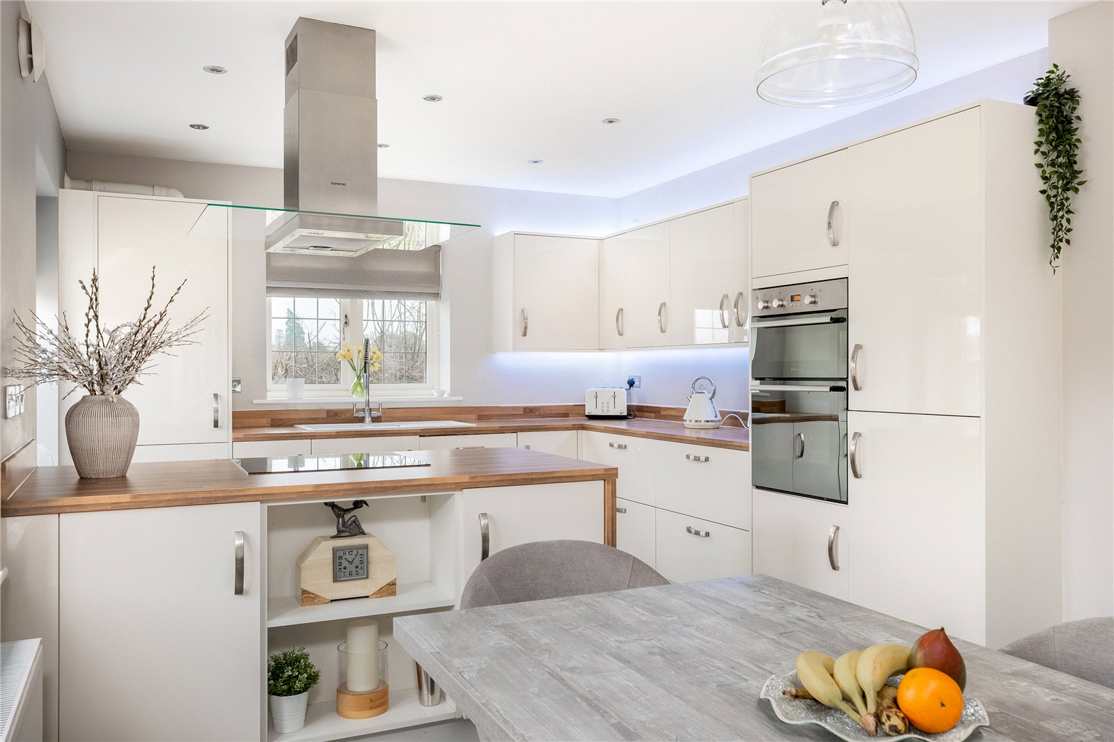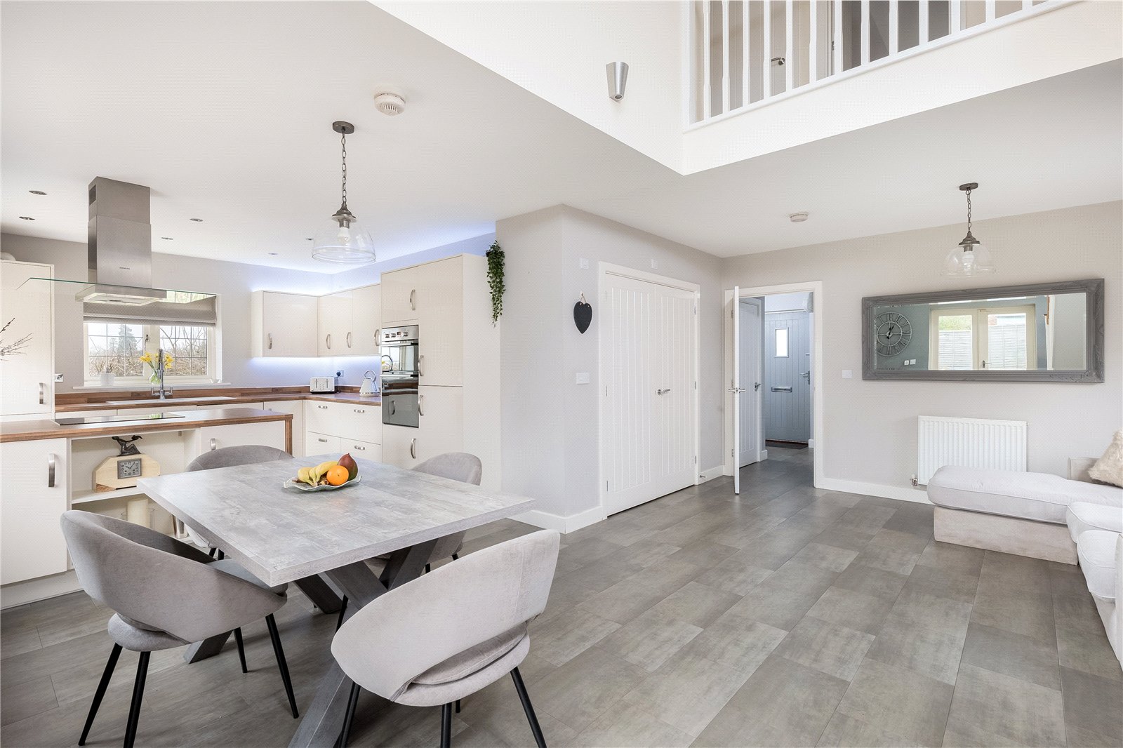 The impressive open-plan kitchen/dining/family room forms the true heart of the home – an ideal family space perfectly designed for both everyday living and entertaining. Beautifully light and spacious, the room is enhanced by a striking vaulted ceiling and galleried landing above, creating a wonderful sense of height and openness.