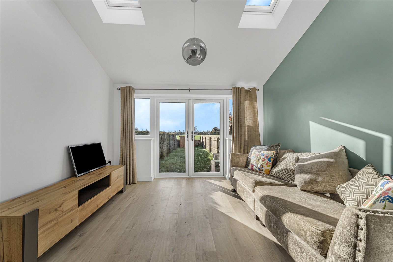 • Bright and Airy Living Room with Skylight Windows