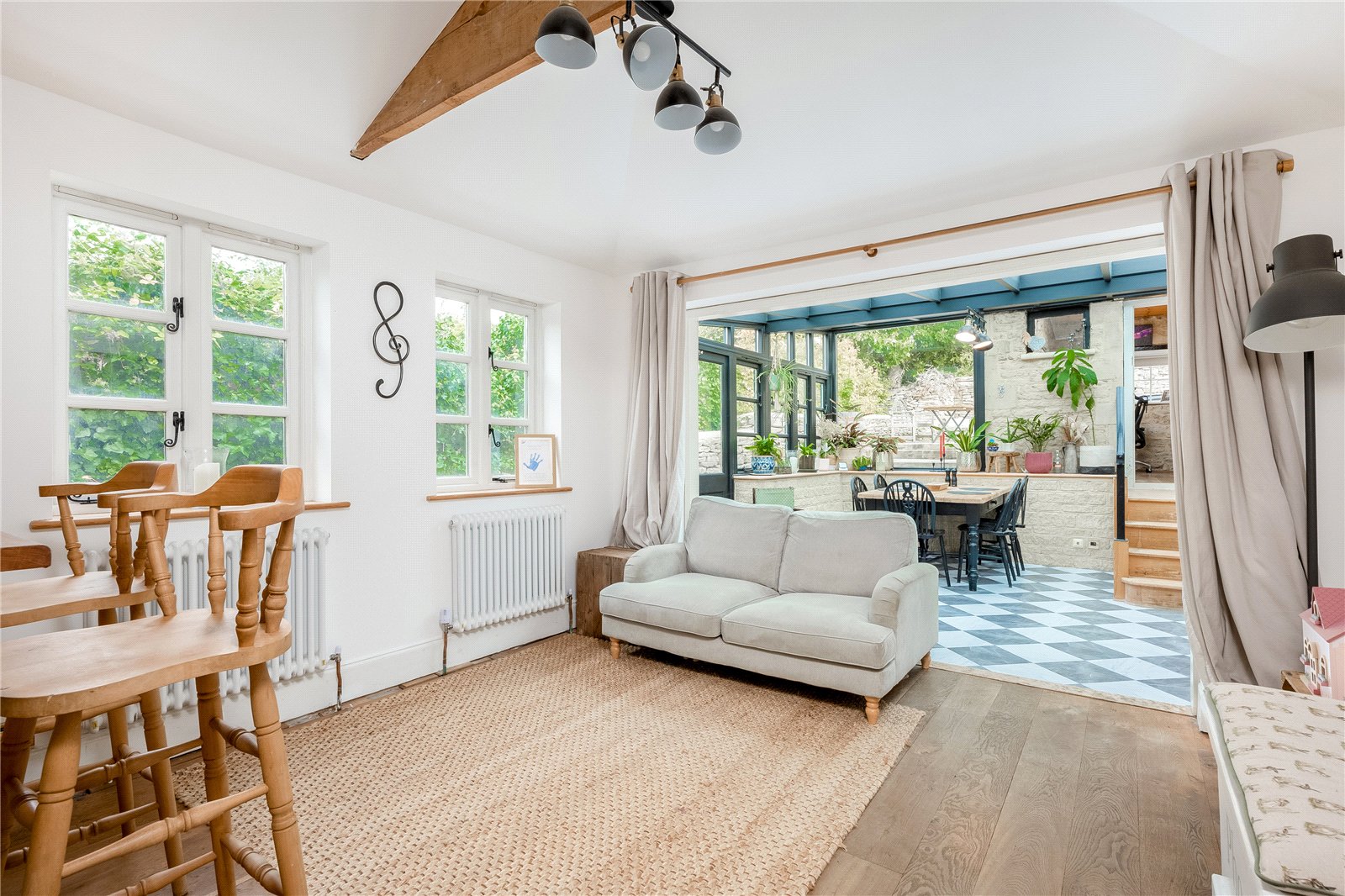 Family Area: Wooden floor, two double glazed windows to side aspects, arch through to