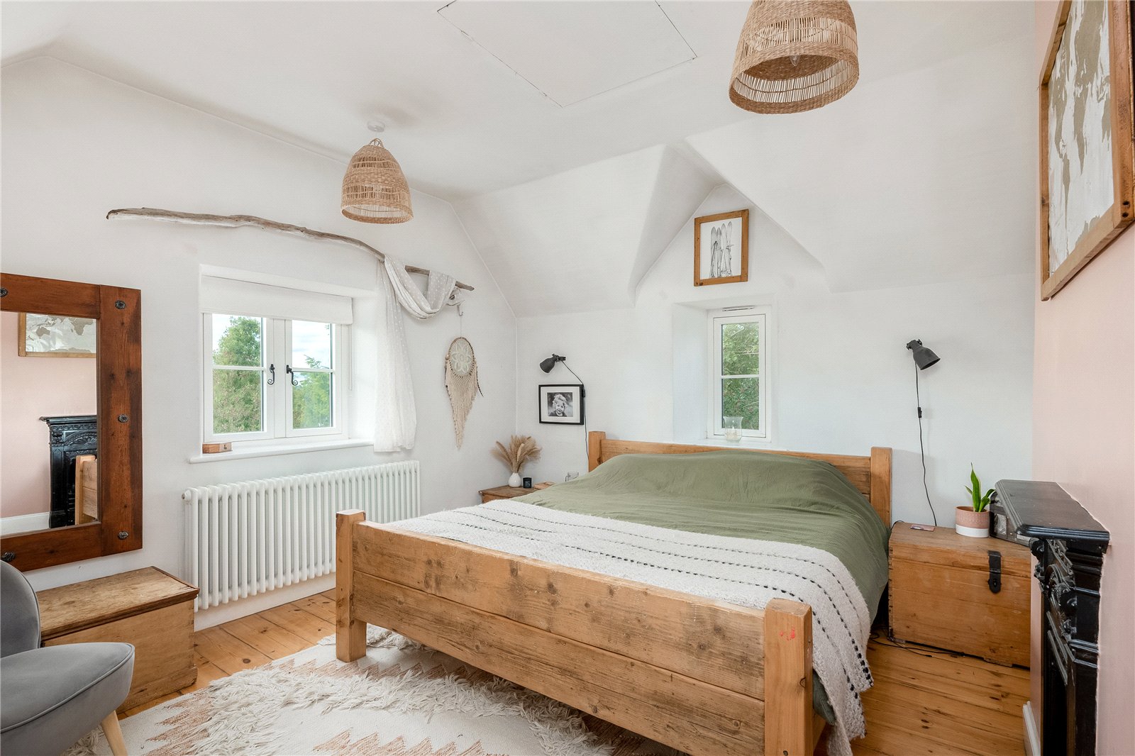 Bedroom One: Double glazed window to front aspect with countryside views. Exposed wooden floor, double glazed window to side aspect, ornate fireplace, access to loft space.