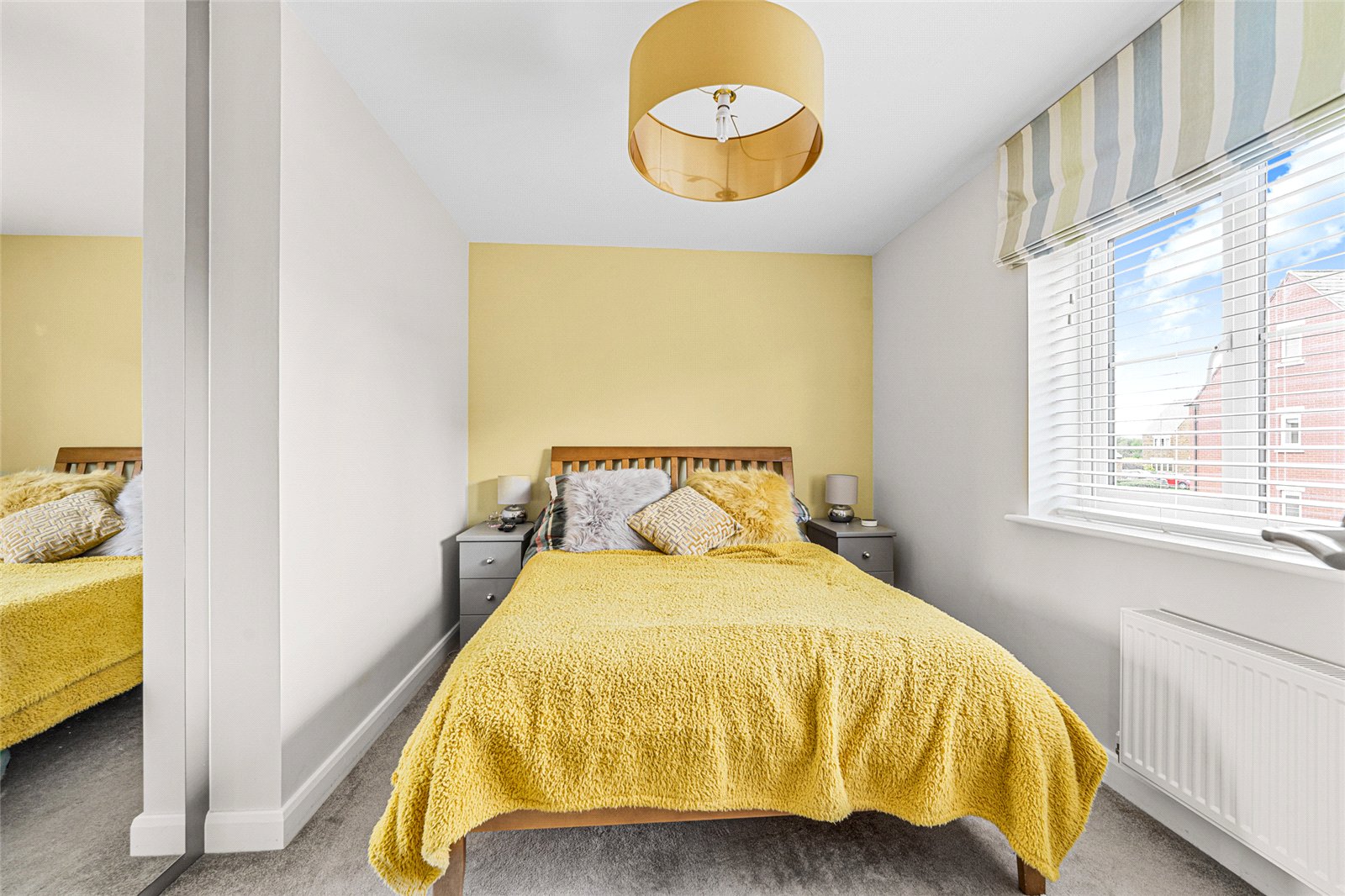Neatly presented with a hedge-lined boundary and a small lawned area, with a pathway leading to the front door. The property also benefits from access to a double garage and off-street parking for up to four vehicles.
