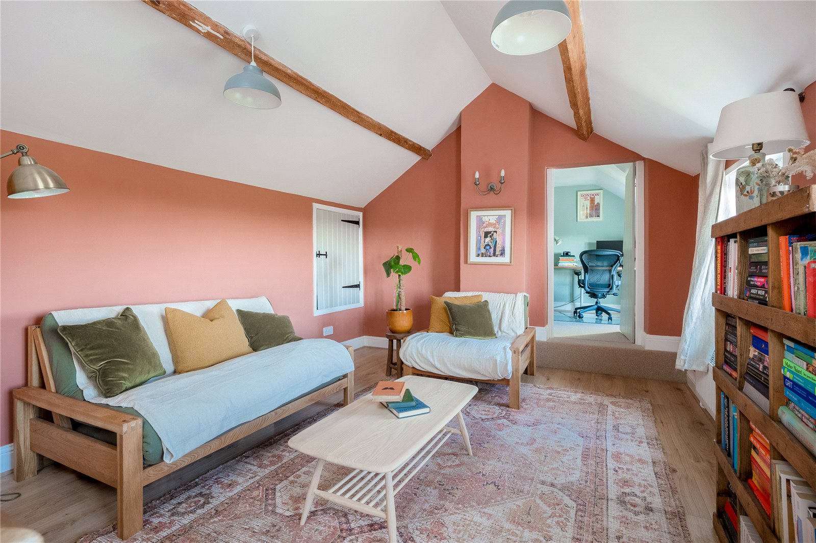 A light and bright galleried landing offers ample space for reading or relaxing, along with excellent storage options.