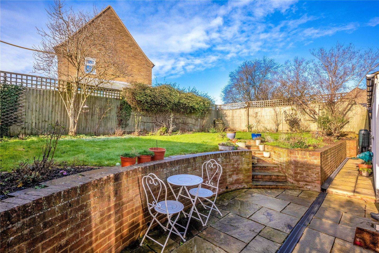 A lovely enclosed rear garden with mature borders and designated areas for entertaining.